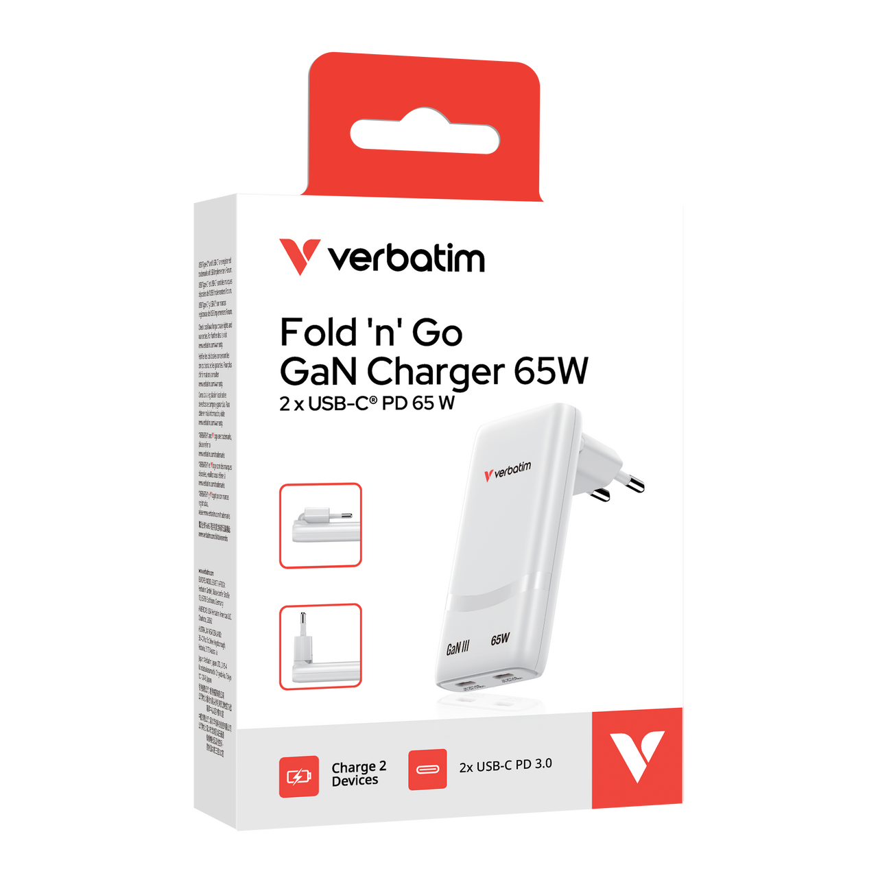 Nabíječka Verbatim Fold 'n' Go GaN 65W EU Plug - bílá