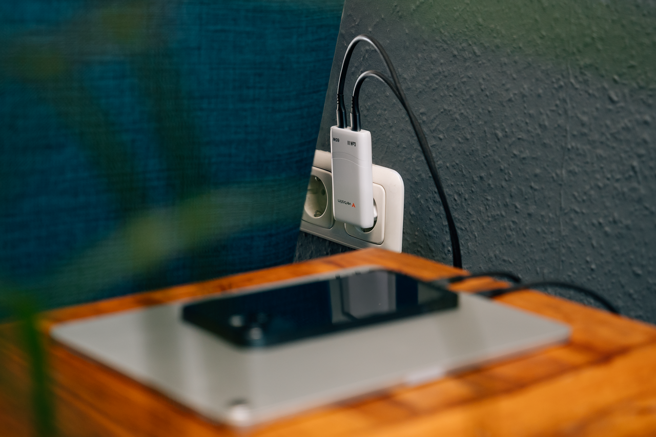 Už nemusíte vybírat mezi zařízeními - nabíjejte dvě najednou díky dvěma portům USB-C. Fold 'n' Go podporuje USB Power Delivery 3.0 a PPS na obou výstupech, což zajišťuje rychlé a optimalizované nabíjení, ať už napájíte MacBook, iPad, Samsung Galaxy nebo jakékoli jiné zařízení s USB-C. Tato nabíječka inteligentně rozděluje energii mezi připojená zařízení, takže dosáhnete nejlepšího možného výkonu bez přehřívání nebo přetěžování. Je rychlá, účinná a stvořená pro požadavky moderního životního stylu s více zařízeními.