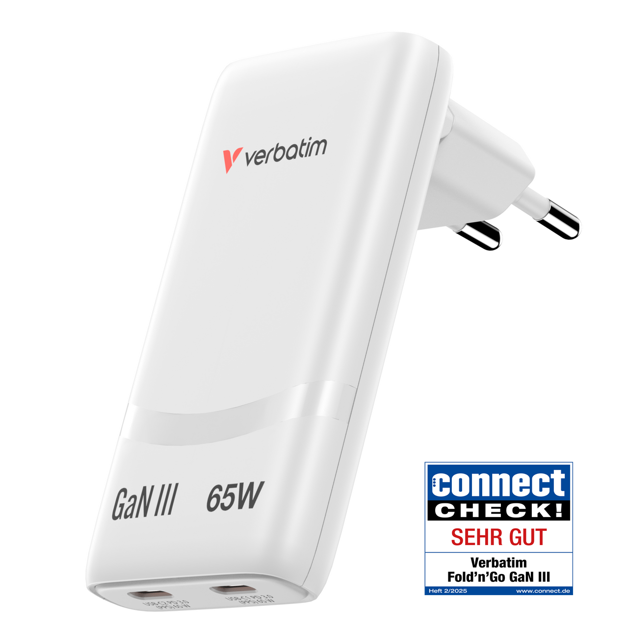 • Verbatim Fold 'n' Go GaN Ladegerät 65W EU Stecker - Weiß