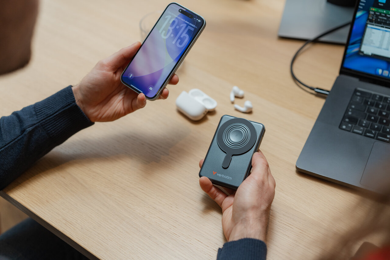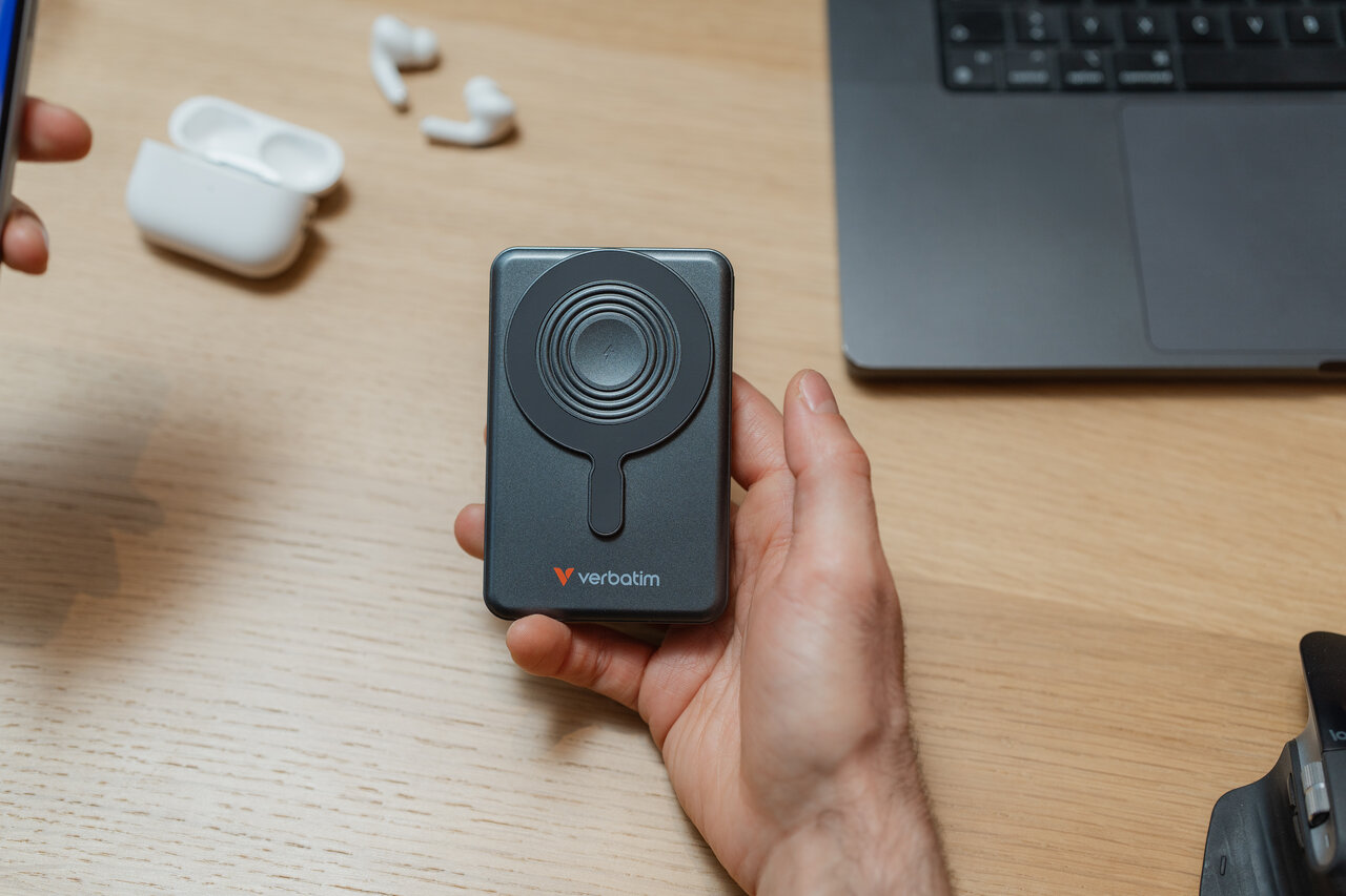 Verbatim Charge ‘n’ Go magnetisk trådlös powerbank med två kablar och skärm 10 000 mAh