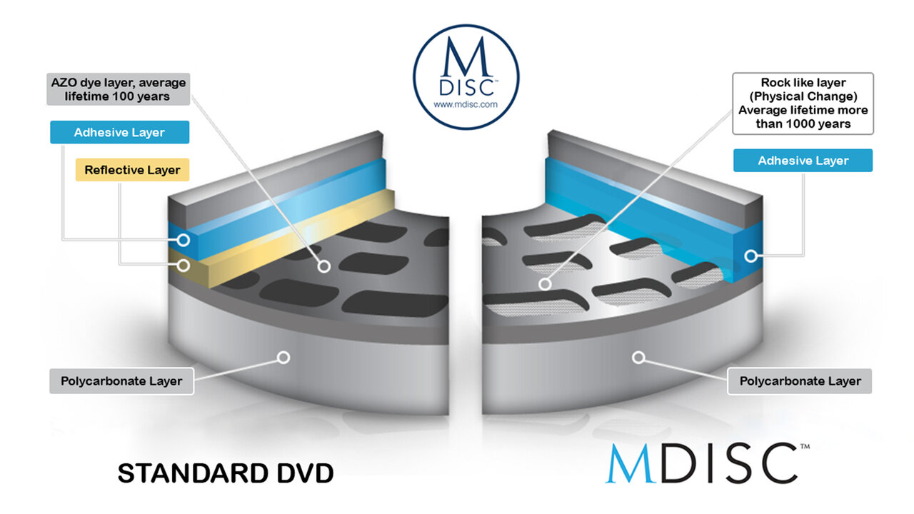 Optik diskler geriye dönük tam uyumluluğa sahiptir, en yeni BDXL sürücüler 1980'lerin başındaki ilk müzik CD'lerini çalacaktır. Optik sürücüler Ultra HD BluRay diskler ve hatta holografik diskler gibi yeni teknolojiler için geliştirilmeye devam edecektir, yani verilerinizi bir MDISC'den kurtarmanız gerektiğinde uyumlu bir sürücünün mevcut olacağından emin olabilirsiniz